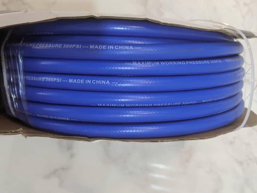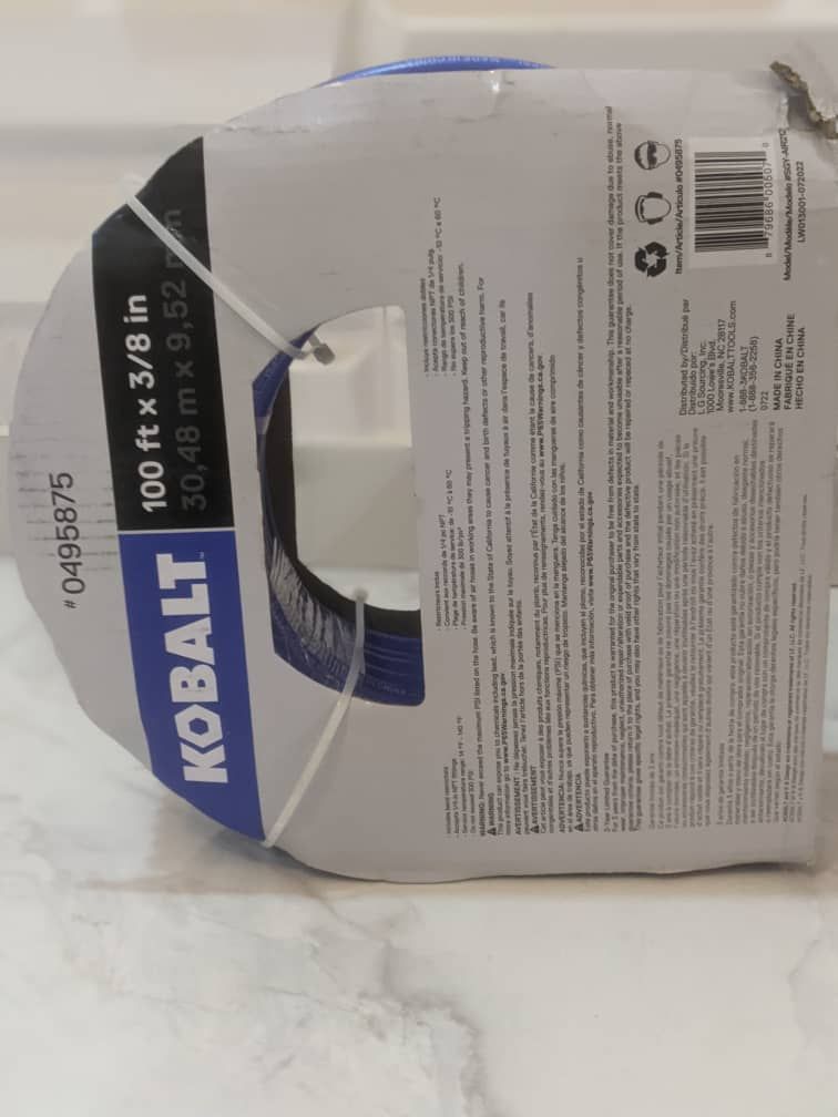 300 PSI maximum working pressure. Accepts 1/4-in NPT fittings. 100ft length. Kobalt 3/8-in 100-ft PVC Air Hose - SGY-AIR212