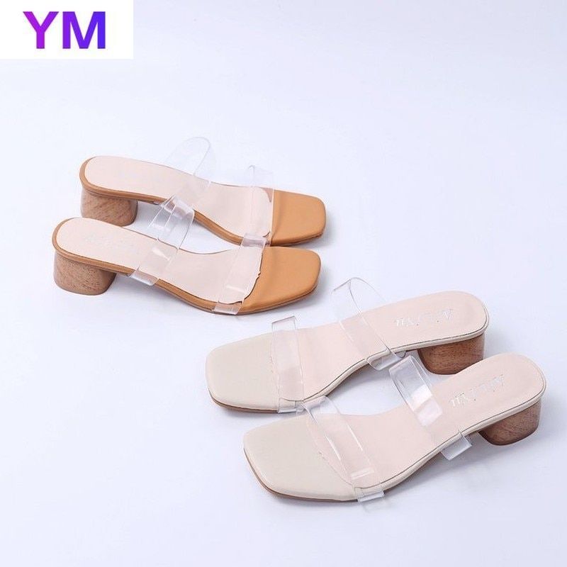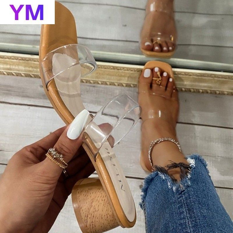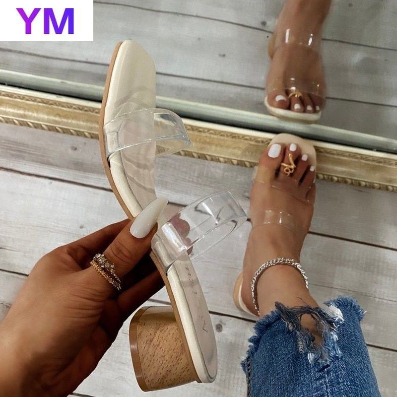 1X PVC Sandals Women Square Toe Clear Round Heels Stilettos Sexy Sandals 2021 Summer Sandals Zapatos De Mujer Tacon 43 Transparent