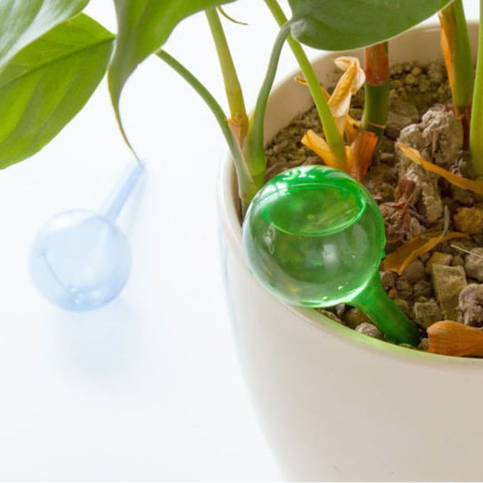 Self-watering system eliminates the need to worry about leaving your plants unattended.
