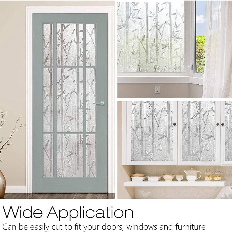 1X PVC Window Film Privacy Non-Adhesive Bamboo Decals Decorative GlCovering Static Cling Tint Frosted Window Stickers for Home