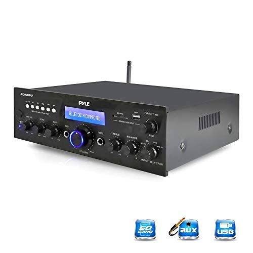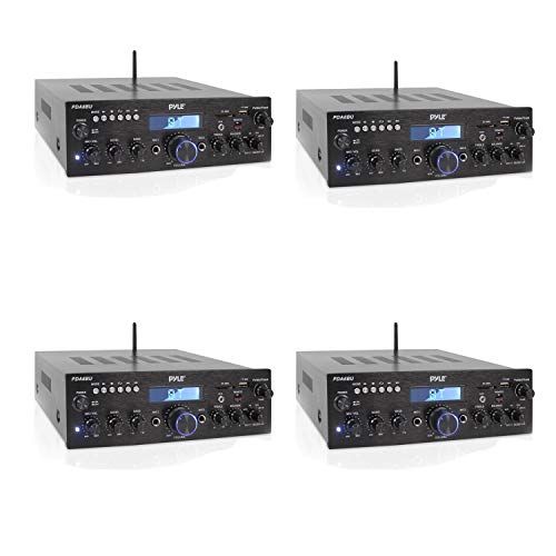 Details: Boost the life of your party or the atmosphere of family movie night with the Pyle Compat Bluetooth Home Stereo Amplifier Reeiver System 4 Pak. These stereo reeivers provide versatile audio entertainment with their many features and abilities. The ompat stereo amplifier omes loaded with audio playbak features inluding FM radio, USB and SD flash memory readers, 3.5mm auxiliary input, 1 pair of RCA inputs for CD or DVD players, and two 1/4-inh mirophone inputs. Connet external speakers to reate a inema-style media experiene or live musial performane in your living room. Use the mi inputs with a built-in talk-over funtion for unforgettable karaoke nights with family and friends. The bluetooth wireless reeiver is ompatible with all of todays latest wireless devies inluding smartphones, tablets, laptops, and omputers with hle-free reeiver pairing. Take your home entertainment to the next level with the Pyle Compat Bluetooth Home Stereo Amplifier Reeiver System 2 Pak enhaning the sound quality of your movies and musi.