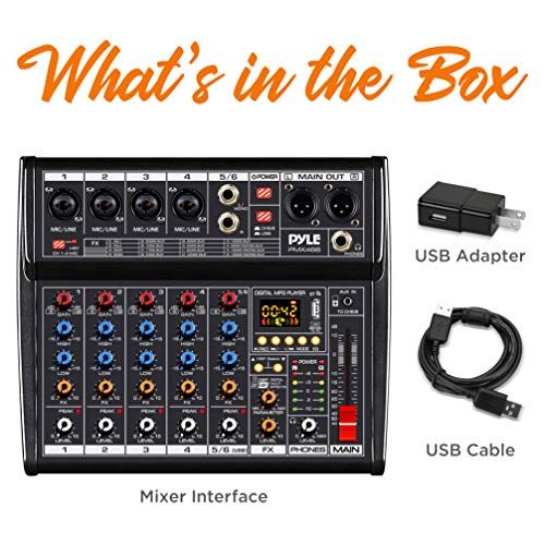 - 8 INPUTS: Pyle DJ mixer USB audio interfae mixer is equipped w/ 4 mi/line mono input for mirophone, musial instrument/audio devie, 6.35 jak (L/R) stereo input, 3.5mm AUX input, and a USB port. It also has a 6.35mm headphone output jak