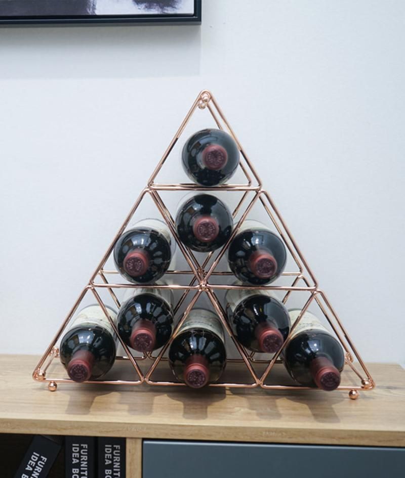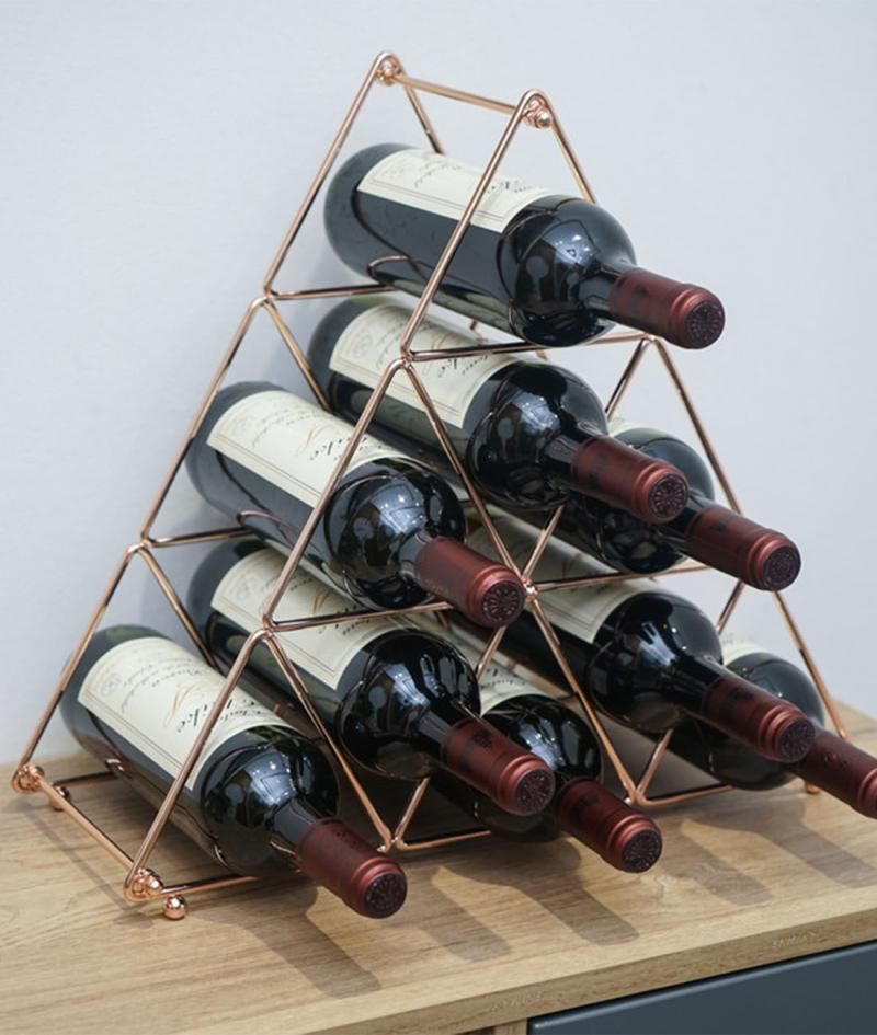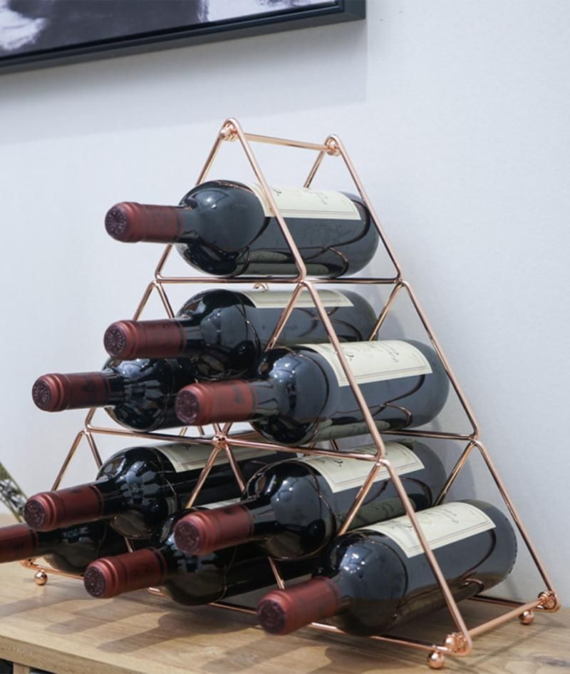 Pyramid Shape Metal Wine Storage Holder (Rose Gold)