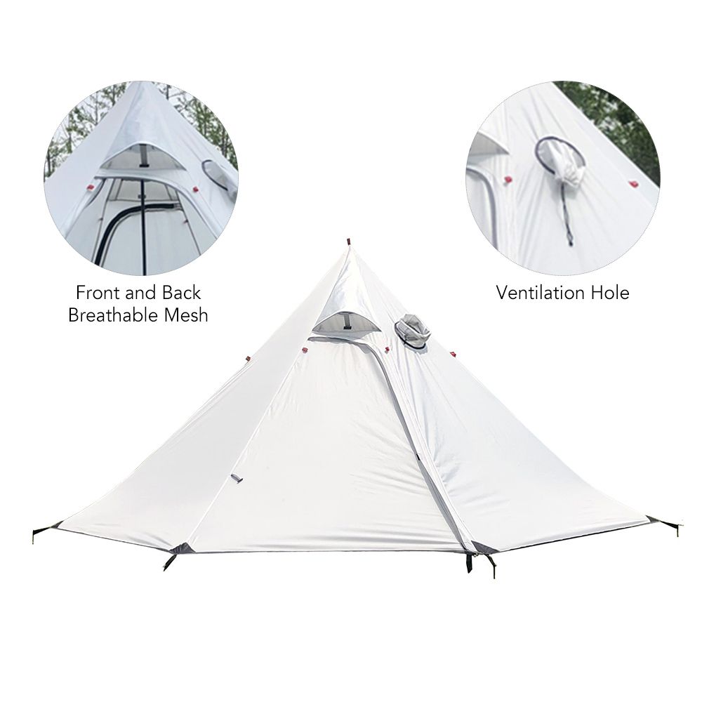 Front and back two breathable meshes, also a ventilation hole for stove chimney.