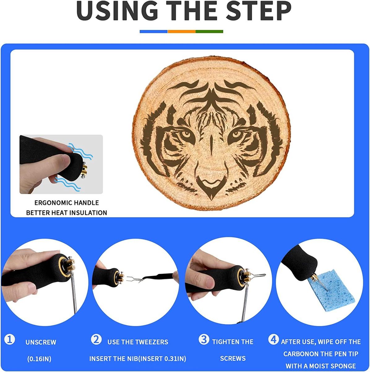 STARTER KIT: The wood burning kit includes a screwdriver, a cleaning sponge and a pen holder. Complete with accessories, you can start making immediately. The handle is heat resistant, the non-slip heat-resistant soldering iron pen weighs only 33g, the 60W heating ceramic technology helps heat up quickly in 20 seconds and heat-resistant bakelite blocks the heat conduction to the pen rod.