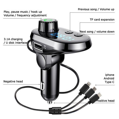 Q15 Multifunctional Car Dual USB 3.1A Charger Bluetooth FM Transmitter with 3 in 1 Cable (Orange)