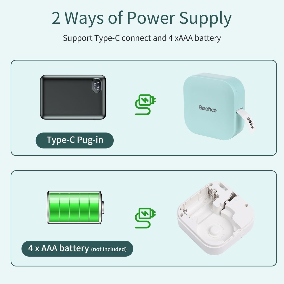 Save More Money - The upgraded new version of the labeling machine can use Type-C plug-in or use 4 AAA batteries. Now you can print anywhere. Great Performance - 203DPI printing resolution, low printing noise, the printer does not need ink cartridge when using, low operation cost.