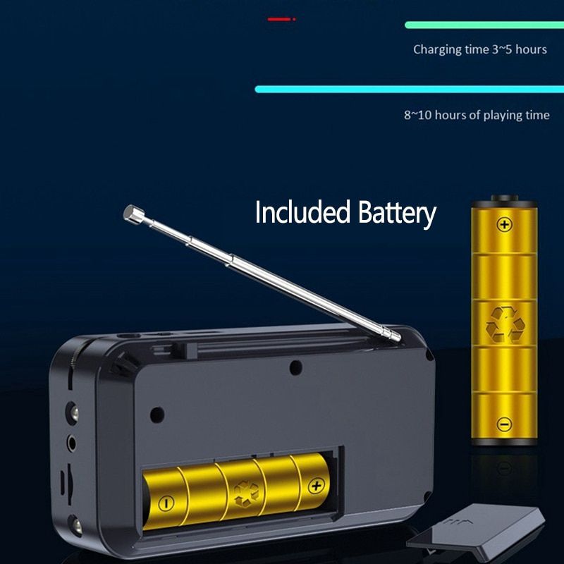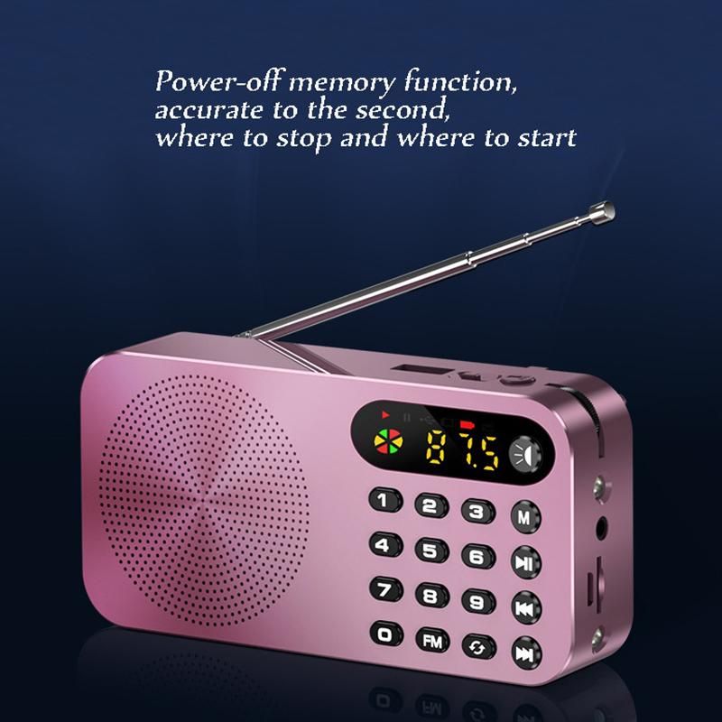 Description: Name: FM Radio Battery capacity: 3600mAh; Playing time: 8-10 hours; Charging time: about 3 hours; Play format: MP3, WMA, WAV, FLC, APE; Frequency modulation range: 64-108 Hz; Headphone jack: 3.5MM; Color: gray, rose gold, red; material: plastic; Size: 128x65x69mm; Features: 1. Uninterrupted listening, 3600mAh large-capacity battery, using 18650 dedicated external battery, long battery life, can be replaced at any time, more convenient and removable battery, visible quality. 2. Support U disk TF card/playing earphone, equipped with 3.5mm standard o interface, USB playback, can support earphone to listen to songs and enjoy high-definition sound quality. Packing list: 1 x radio 1 x charging cable 1 x cable 1 x yard Note: Due to different personal displays, light and contrast differences, there may be slight color difference between the picture and the real object.