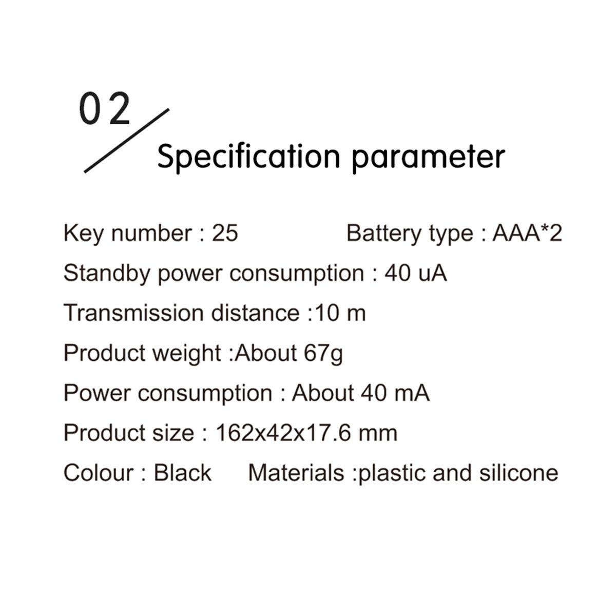 Backlight function, the white backlight automatically turns on when the remote control is powered on. And you can turn on/off the backlight function.