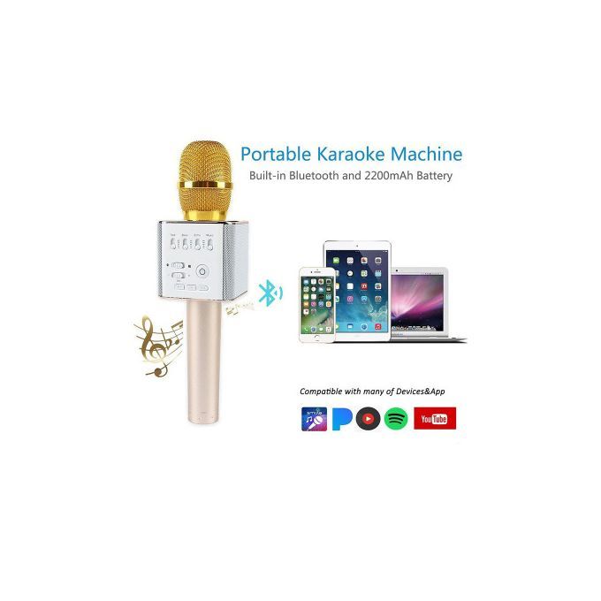 Product DescriptionWith a stereo microphone and Bluetooth speaker you can instantly make your own Karaoke fun wherever you like.For novice singers there is no better way to show off to your friends and bring X-factor magic to your life because if you have talent then why not show it off.Enter the party atmosphere and sing to your heart's content with speaker artifacts.Bluetooth wireless microphones and 2-in-1 speakers, can work independently without additional connections.There are enough control buttons for you to adjust the singing effect, play songs / shift on Mic, easy controls. Built-in 2600mAh lithium battery for up to hours of singing, enjoy the effects of KTV Karaoke with a smart APP mobile.Multi-purpose: Bluetooth speaker, Karaoke singing, Car Stereo, podcasting, etc.Ideal for all vocal applications from singing to talking and can be used as a bluetooth speaker. high compatibility, suitable for iOS and Android smart phones, iPad tablets, bluetooth connections