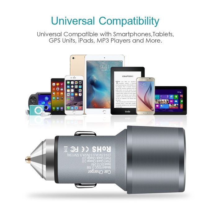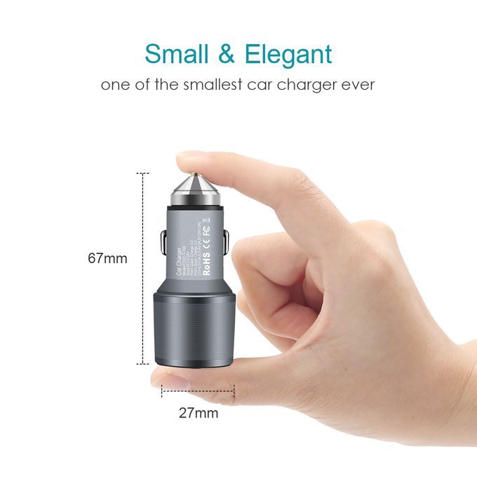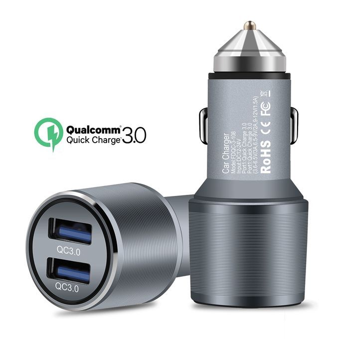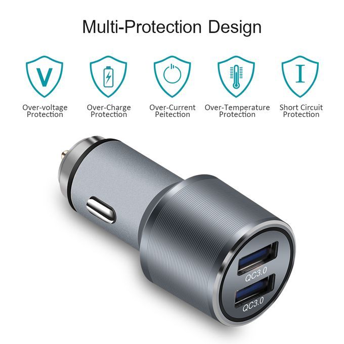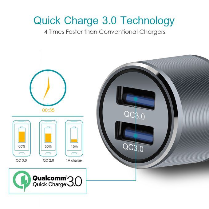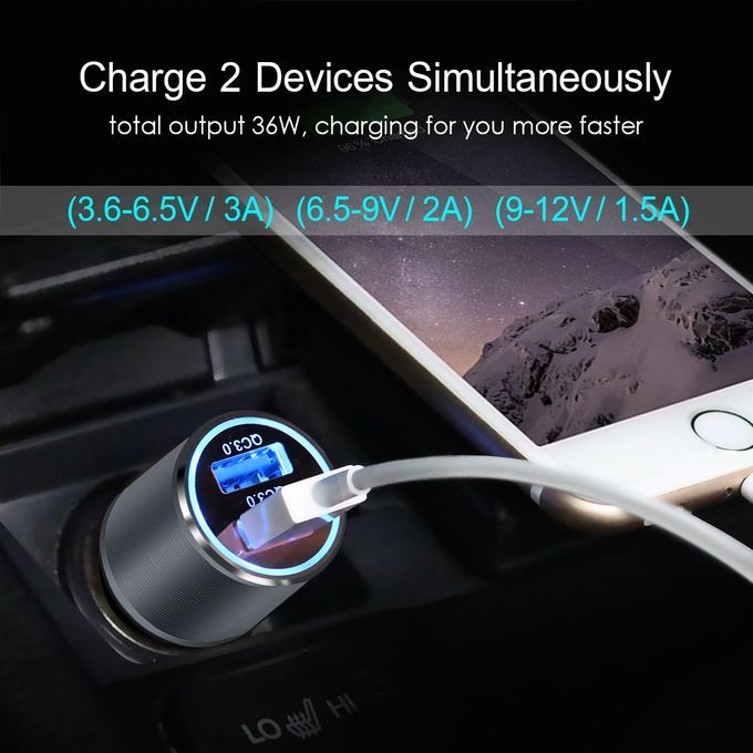 Dual USB Car Charger Quick Charge 3.0 5V/3A 9V/2A 12V/1.5A for for Xiaomi iPhone X 7 Samsung Android iOS Mobile Phone Charging Description: ● The power of dual USB ports up to 36W, meets the Quick charge demands ● Stretchable buttons for better connection and not easy to cut off ● 5 protections (over-current protection, over-voltage protection, over-temperature protection, short circuit protection, anti electromagnetic disturbance) ● Pure LED lights, matched with translucent PC iris, elegant and no blind vision at night ● Equipped with expanded port, satisfies the charging needs for the back seat passengers Pacakge includes: 1 x Quick Car Charger 3.0 Adaptor Image Description: