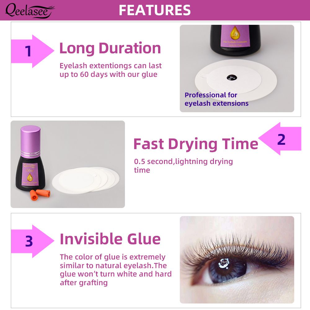 1 * Qeelasee 0.5s Fast Drying Eyelash Extension Glue Lasting
