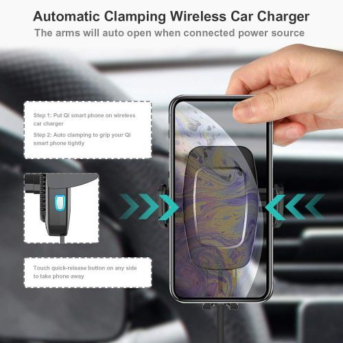 - Experience fast wireless charging in your car with the automatic clamping wireless car charger: Our new Qi certified 2 in 1 automatic clamping wireless car charger mount and car phone holder will keep your phone charged hands free. The wireless car charger package also includes the QC 3.0 Quick Charge Car Charger adaptor, Air Vent mount, Dashboard / Windscreen mount and a USB Type-C cable