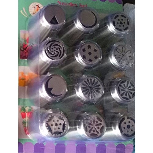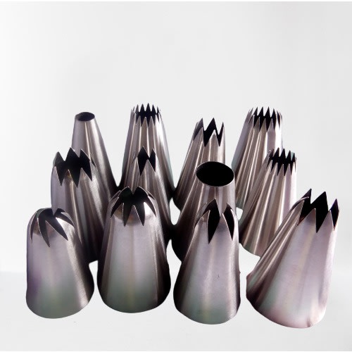 Cake Decorating tips - 12 stainless steel tips, which will help you create most kinds of patterns on cake , gives you a very bold beautiful patterns which are best for any occasion and also makes your decoration very fast.