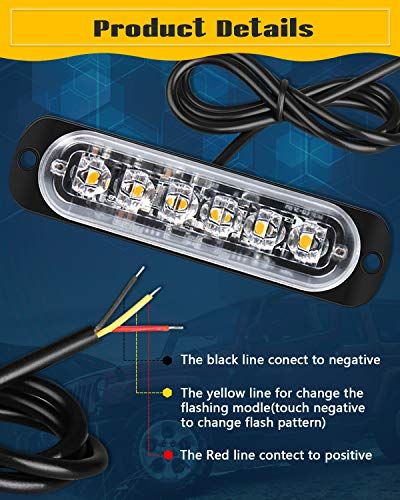 - 18 STROBE FLASH PATTERNS: Change between 18 different flash modes, inludes last pattern memory reall. Patterns inlude Rotating, Flashing, Alternating Between Left and Right Side, et. These modes are sure to provide aution to potential upoming hazards.