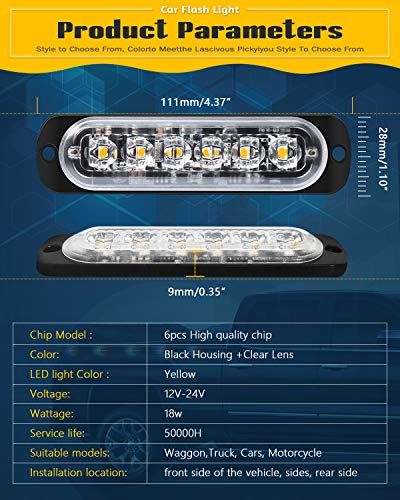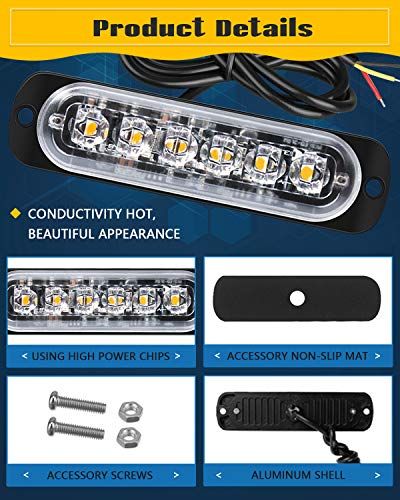 - R BRIGHT: Compat and lightweight, easy to use, Brighter and more effetive than standard LED strobes, high quality aluminum alloy + PC lens, Universal fit for all Cars SUVs and Truks with DC 12V-24V, Easy to install and durable, Low power, fast startup time, Saving energy.