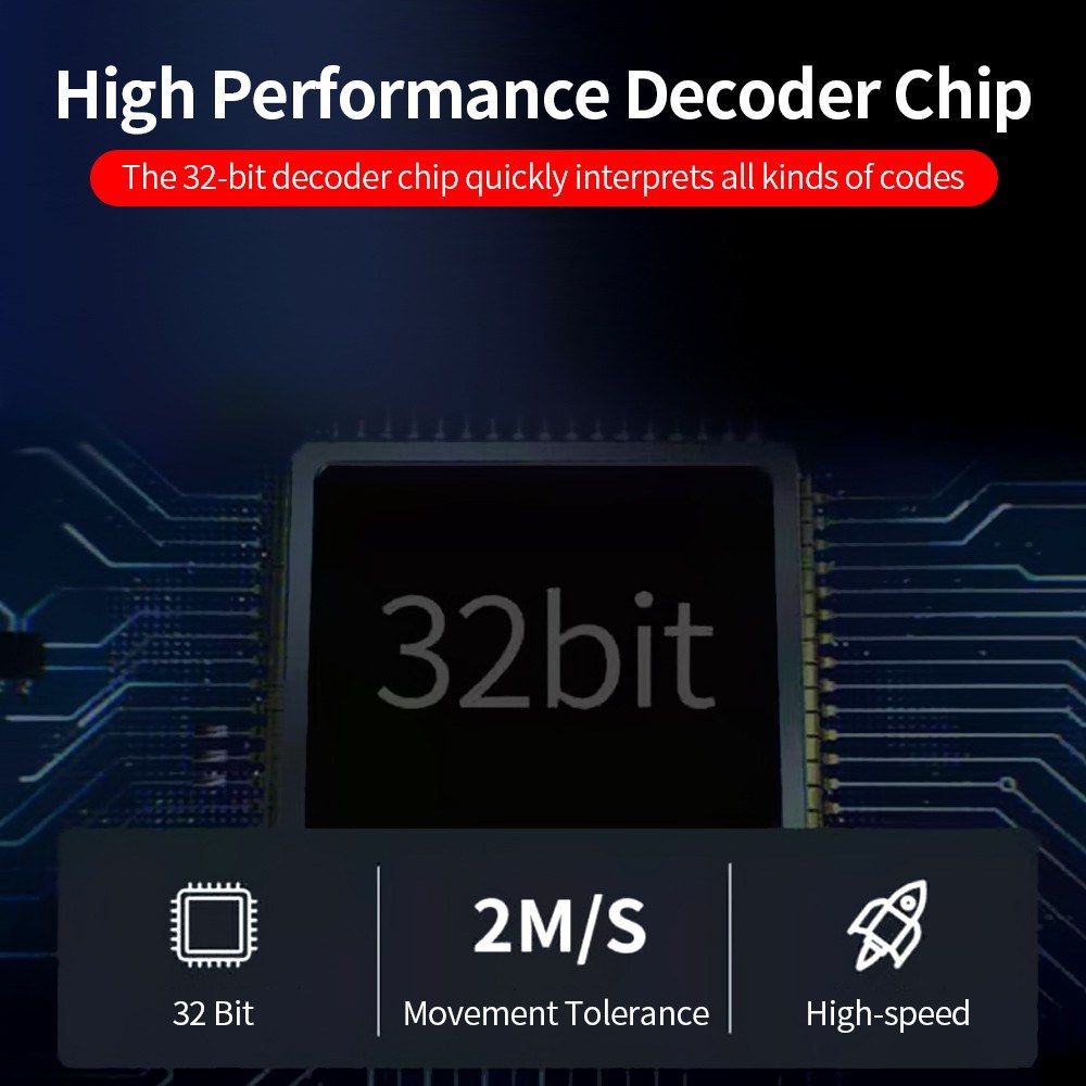 The 32-bit decoder chip quickly interprets all kinds of codes.