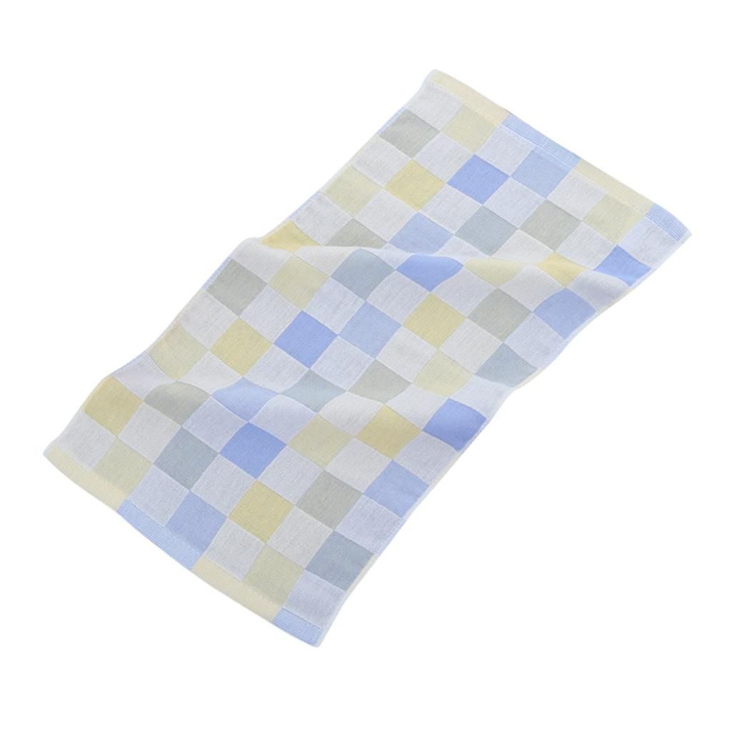 Double-deck Pure Cotton Kids Children Hand Face Towel Plaid Blue 25x50cm