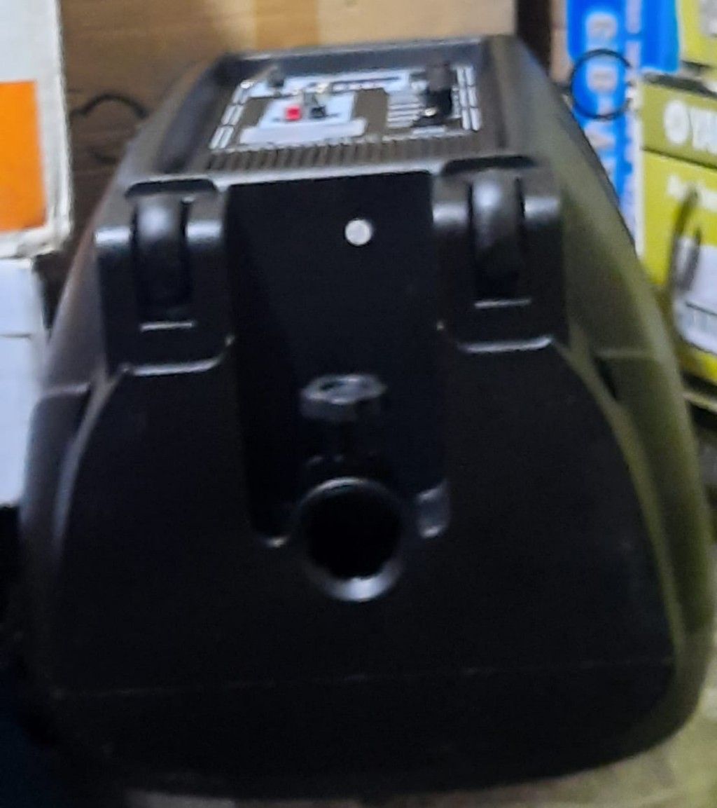 amplifier operating from mains or internal rechargeable battery powers a 15" bass driver and 1" compression driven. A pair of included VHF handheld wireless microphones work in conjunction with the internal receiver, two standard 'wired' microphones can also be plugged in giving the user a total of four microphones. Finally an auxiliary line input and integral USB/SD media player allow for direct reading of MP3s from USB or SD cards. iPods, Laptops, CD players can also be connected via the PAs RCA (line input) located on the rear of the unit. A moulded handle and pole mount are included and a retractable trolley handle and rear wheels provide easy portability.