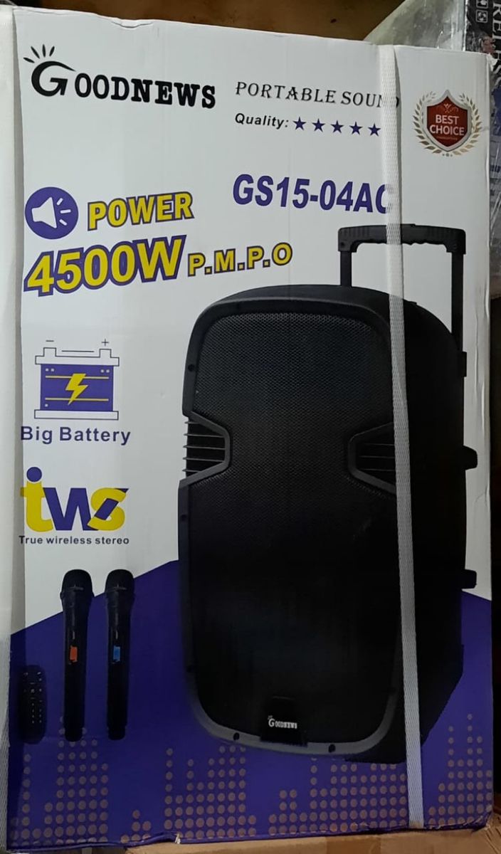 The 15 inches PA SPEAKERRemote control2pcs wireless microphonesAdapter chargerOwner's manual