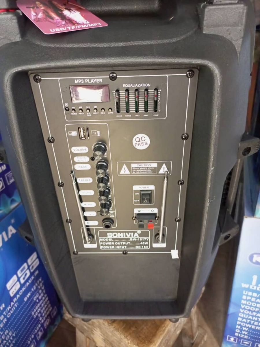 - Controls: Mic volume, Echo, Bass, Treble, Volume & VHF mic volumes