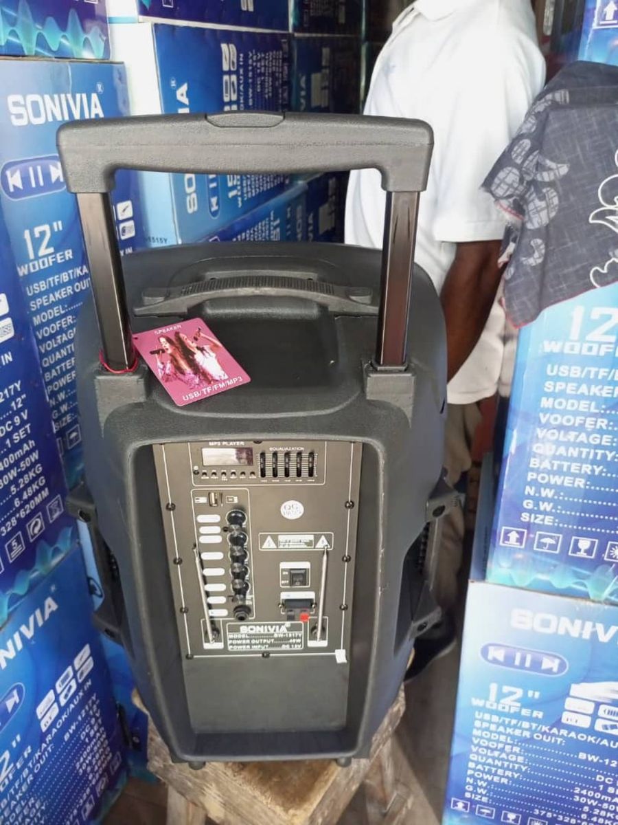operating from mains or internal rechargeable battery powers a 15" bass driver and 1" compression driven. A pair of included VHF handheld wireless microphones work in conjunction with the internal receiver, two standard 'wired' microphones can also be plugged in giving the user a total of four microphones. Finally an auxiliary line input and integral USB/SD media player allow for direct reading of MP3s from USB or SD cards. iPods, Laptops, CD players can also be connected via the PAs RCA (line input) located on the rear of the unit. A moulded handle and pole mount are included and a retractable trolley handle and rear wheels provide easy portability.