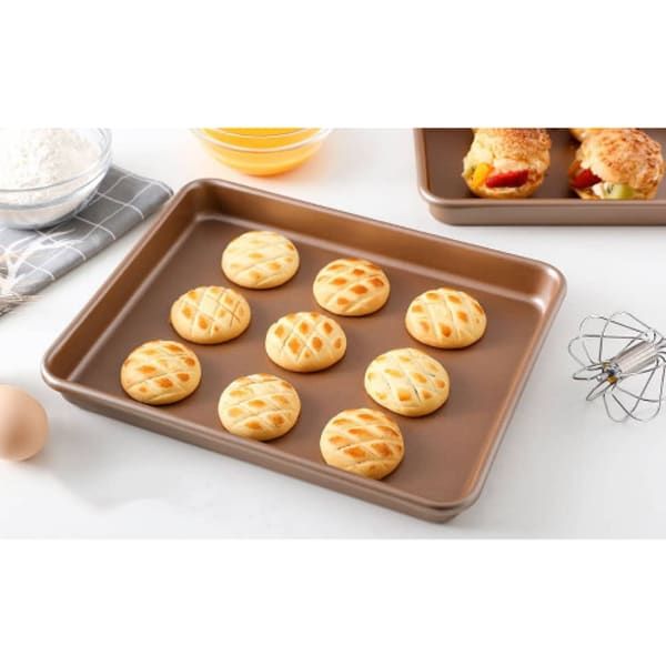 Nonstick coating baking pans, easy to release and clean. Hand wash is recommended, dry it after immediately after washing it . Food grade coating material, reach FDA standard, with 3 layers coating for both sides to avoid rust and scratches.