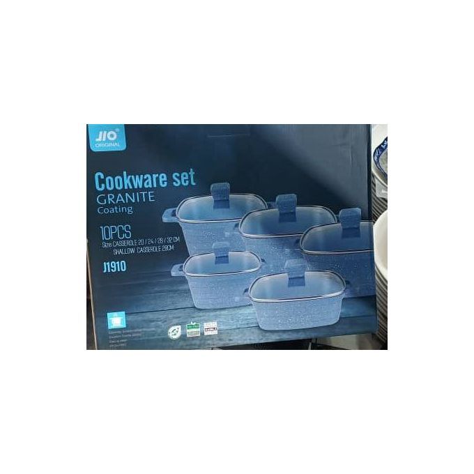 10pcs Jio cookware set has a base perfect for inducing health cooking. The pots are ovenproof and dishwasher safe. Excellent for frying and braising with perfectly shaped heat resistant handles. With modern design and cooking, this cookware set is your best kitchen partner. It can be used on Halogen cooktop, Electric cooktop, Ceramic cooktop, and gas cooktop.Cookware set options feature casseroles, saucepans and frying pans. These cooking utensils have everything you need to ensure a hassle-free time in the kitchen. A range of contemporary cookware that complements today's busy lifestyle and helps you cook & serve tasty and healthy food. Multiple set options let you choose must-have essentials for your kitchen.