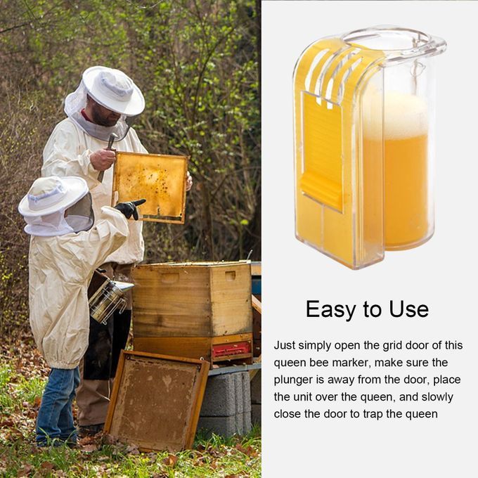 [Easy to Use]Just simply open the grid door of this queen bee marker, make sure the plunger is away from the door, place the unit over the queen, and slowly close the door to trap the queen.