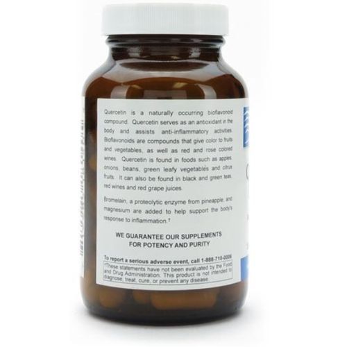 Quercetin is often used to aid in joint health and seasonal allergies. Other health benefits are being revealed in research, including prostate function, and antioxidant protection against free radicals, which may be associated with aging. Quercetin is a bioflavonoid compound found in foods such as green leafy vegetables, apples, beans, citrus fruits, along with Vitamin C. It is also found in green and black tea. We combine additional vitamin C, magnesium, bromelain, and other bioflavanoids for a synergistic formula and optimal results. View Product Information Sheet (PDF) The Product Protects against prostatis symptoms Quercetin Complex assists in creating a healthy inflammation response Increases Vitamin C absorption Vegetarian /Vegan formula Gluten Free Contains no artificial flavors, colors or preservatives; no wheat, gluten, milk, eggs, peanuts, tree nuts, crustacean shellfish or fish. Product Specifications McGuff Item #008602 Count Size: 100 Vegetarian capsules per amber glass bottle Specification: Vegetarian capsule