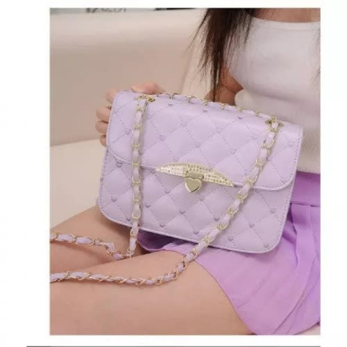 Buy Quilted Leather Crossbody Chain Strap Purse - Purple in Nigeria