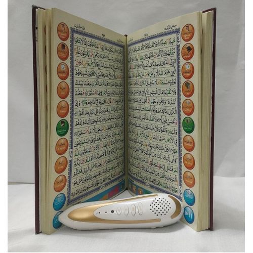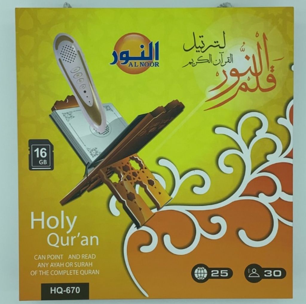 Make the recitation of the Quran fun and interesting to your kids with this digital Quran pen reader.The best tool to read, learn and memorize the Holy Quran .Quran Pen Reader has unique technology that scans and pronounces Quran page,Surah,Ayah from printed Quran. The Pen fits in a pocket and has an intuitive ,friendly interface. Quran Pen Reader improves reading skills for all learner , maintains the flow of reading as student and non -Arabic speaking people encounter unfamiliar words.Use the Quran Pen Reader as your reading assistant anywhere anytime.This important device can improve reciting skills dramatically! With the auditory support provided by the Quran Pen Reader ,frusration and embarrassment disappear.
