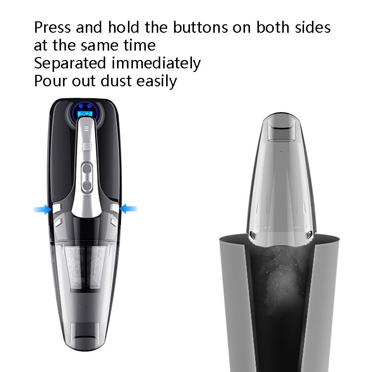 8. Press the ons on both sides at the same time to separate immediately and pour out the dust easily