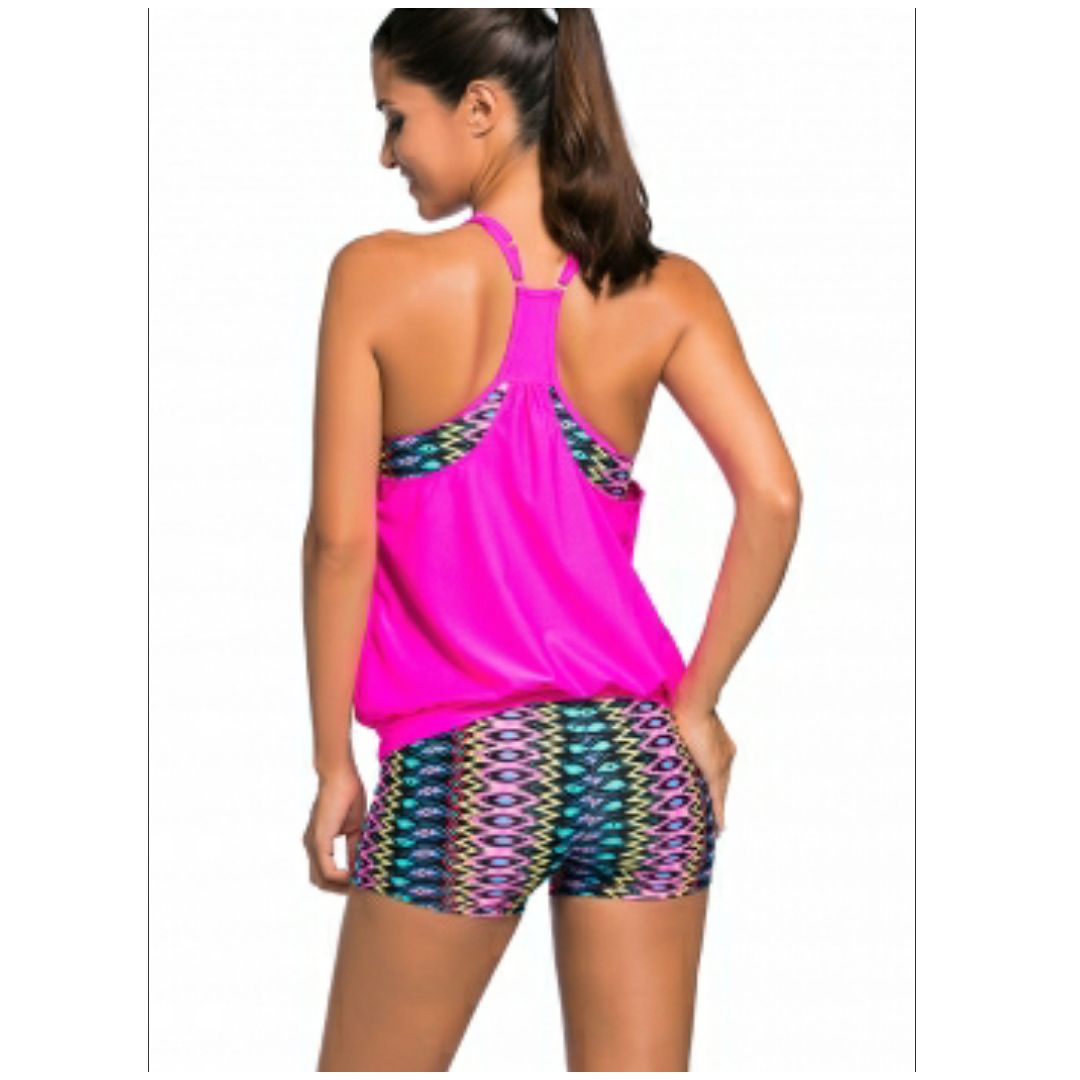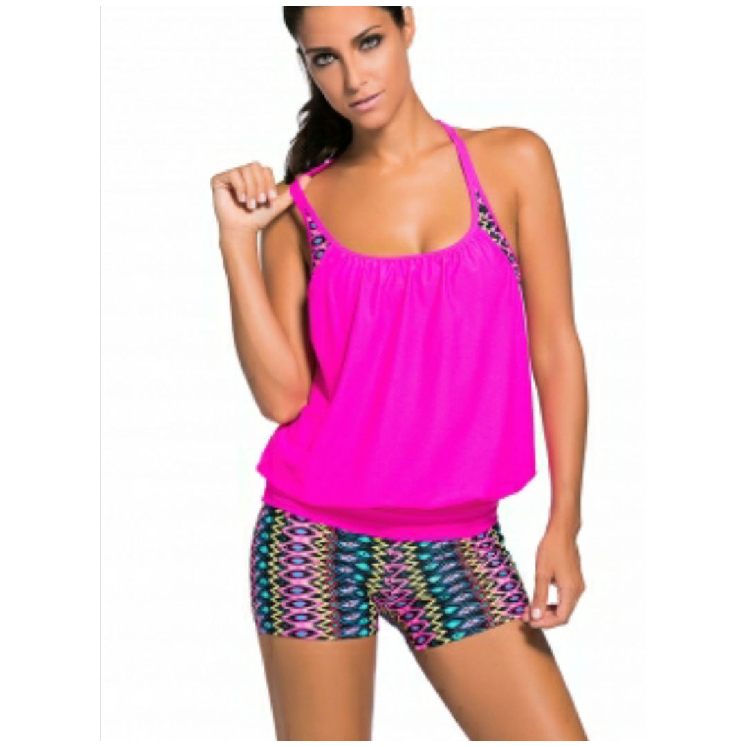 Create your personal summer beach style by our wholesale bikini top and bottom collection. It has a relatively conversative secure silhouette by covering most of the body, scoop neck, detachable padding, cool tank sleeveless and racer back style with contrast print inserts to look special.