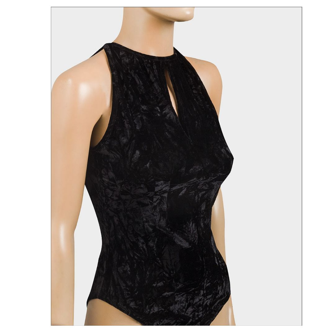 Made from crushed velvetCrew neckline with buttons fasteningKeyhole to front & backSleeveless designPress stud bottom fasteningFigure fitBlackAffordable