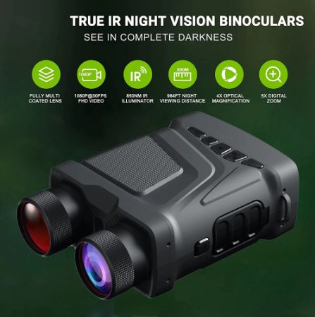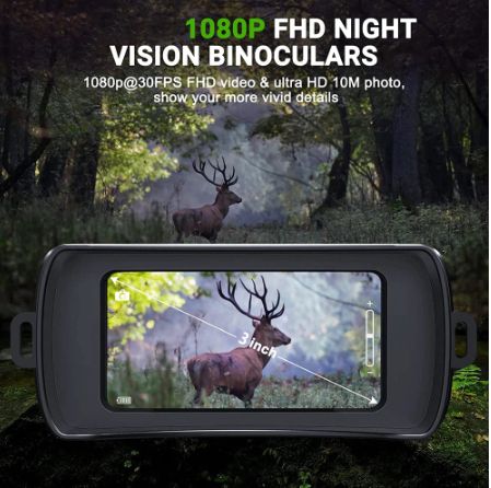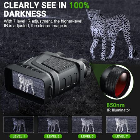 Binocular night vision Device Rechargeable 6W 850nm Infrared 1080P HD 5X Digital Zoom Hunting Telescope Photo Video Record3 Inch TFT Screen: The screen of this night-vision device is a 3 inch TFT screen, large screen allows to see the images more clearly. Adopt 6W infrared light and 850nm illuminate, the infrared lights of 7 levels are adjustable according to the ambient light, giving you a better using experience.Day&Night Use: This night-vision device can be used to observe objects in the dark and low light situation. The viewing distance in the low light environment will be 3.0 meters to infinite, and 200~300 meters viewing distance in the all dark environment. Languages Optional: English, Simplified Chinese, Traditional Chinese, French, Dutch, Spanish, Italian, Portuguese, German, Russian, Japanese, Korean.