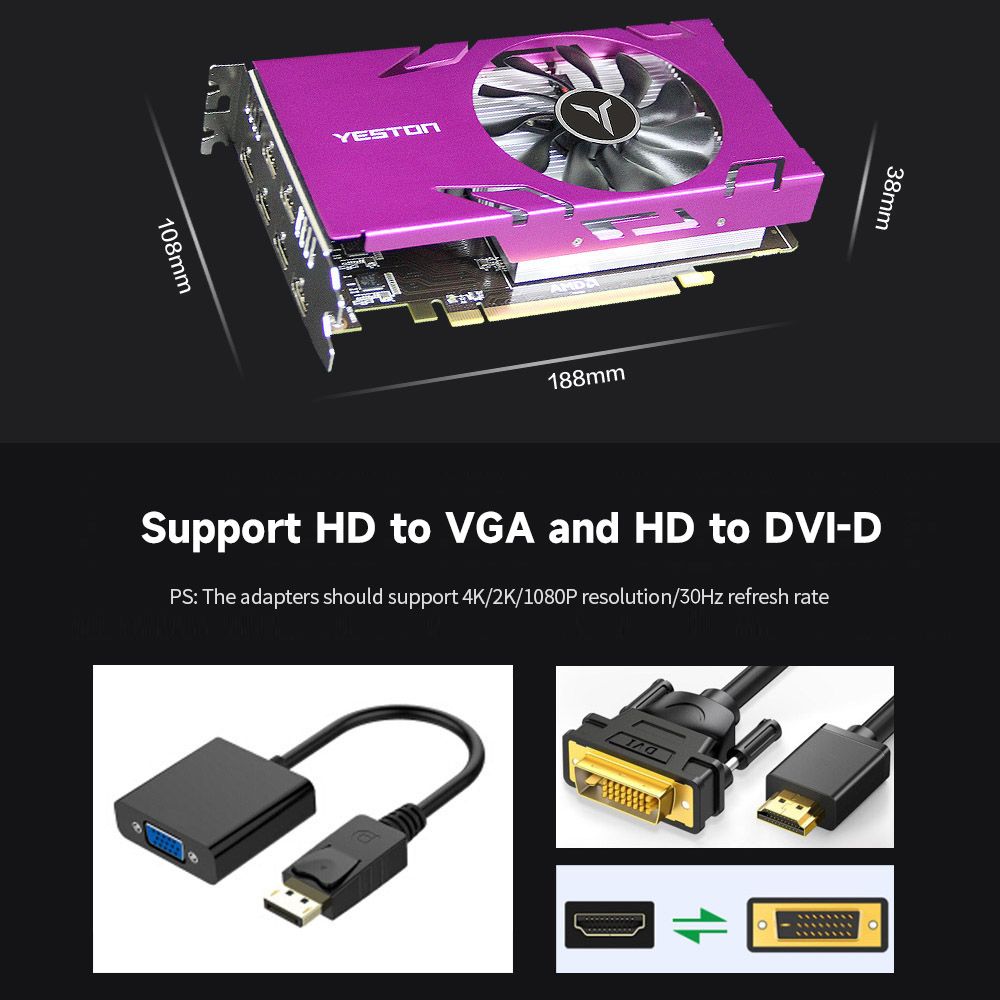 Support 4K/2K/1080P resolution, support HD direct connection, HD to VGA and HD to DVI-D.(The adapters should support 4K/2K/1080P resolution/30Hz refresh rate)