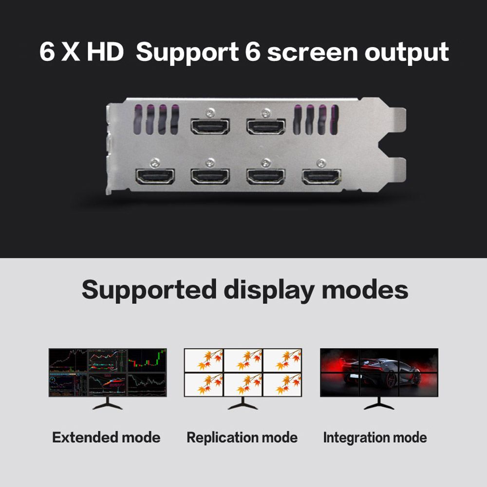 Features:6 HD ports support 6 screens display, you can adjust freely between extended mode, replication mode and integration mode.