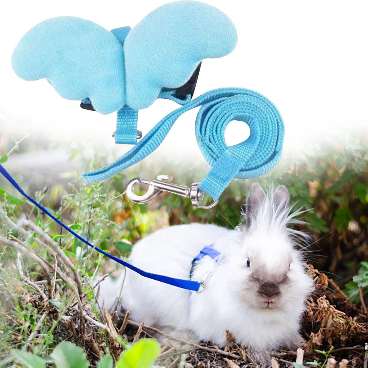 【BUNNY HARNESS AND LEASH SET】 the angel wing pets harness and leash set adopts angel designed, makes your rabbit become more cute and more attractive.