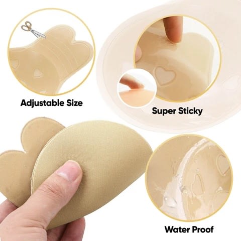 Features: Women & rsquo;s strapless reusable bra nipple covers, create deep V shape charming breast. Made from self-adhesive medical silicone, skin-friendly, leaves no trace on your skin after removing.