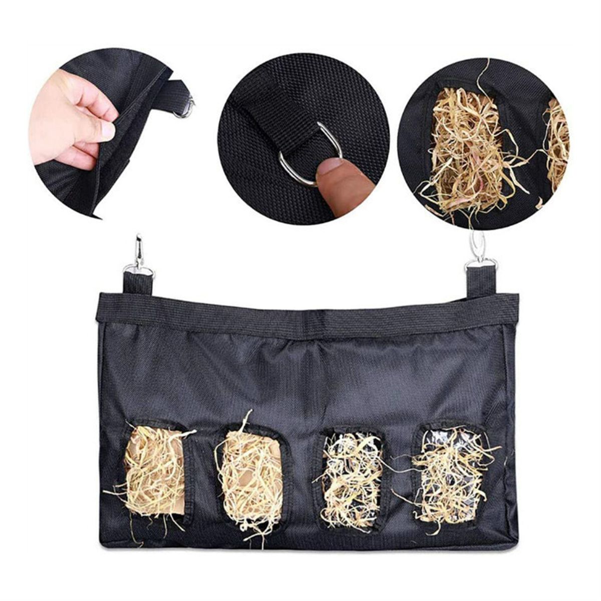 [Stain-resistant]The black color of hay bag will not look dirty for long-term using, it is not necessary to clean often.