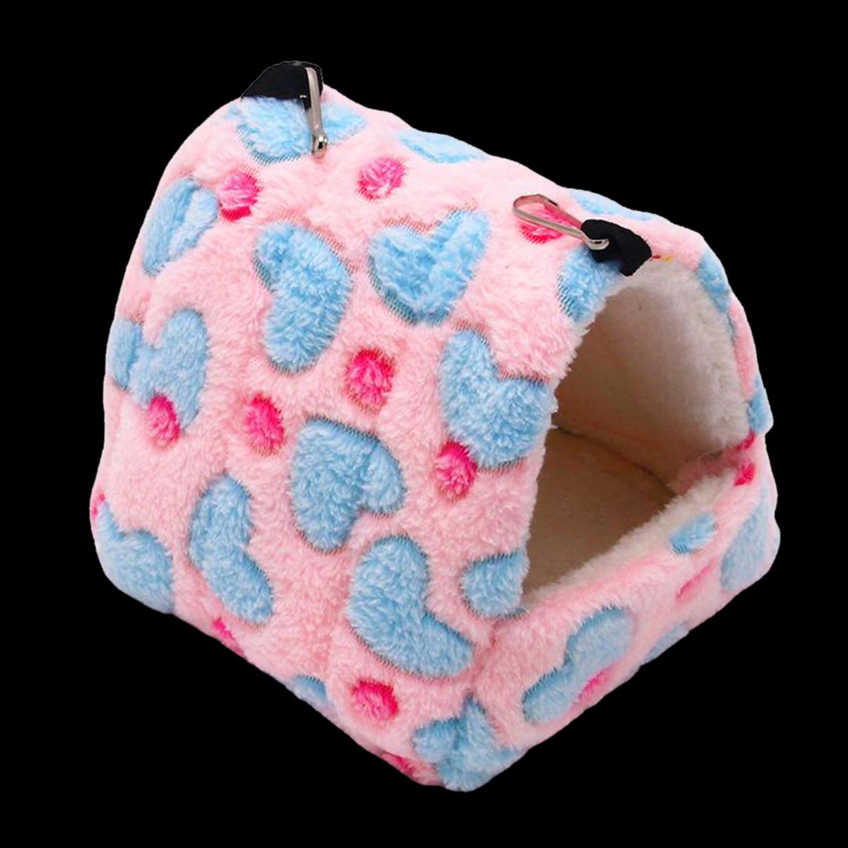 Warm Enough for Winter: The thicken cotton hammock ensure your little fluffy pets get through the winter easily.Material: Soft and comfortable short plush fabric and cotton, this bed is very silky,not easy to lose hair, can not afford the ball, does not fade, no stimulation to the skin of the pet.Design: Easy and portable to hang with the bilateral hooks. Half door design with flexible function, fence door can be flat or raised.Easy to clean and hand wash, this pet hammock doesn't take up too much space from the cage but still provides her with plenty of privacy and room to move around.Suitable for hamster, Rat,golden bear, Squirrel,sugar glider, Chinchilla,Guinea,Bird,mini hedgehog, small animals etc.