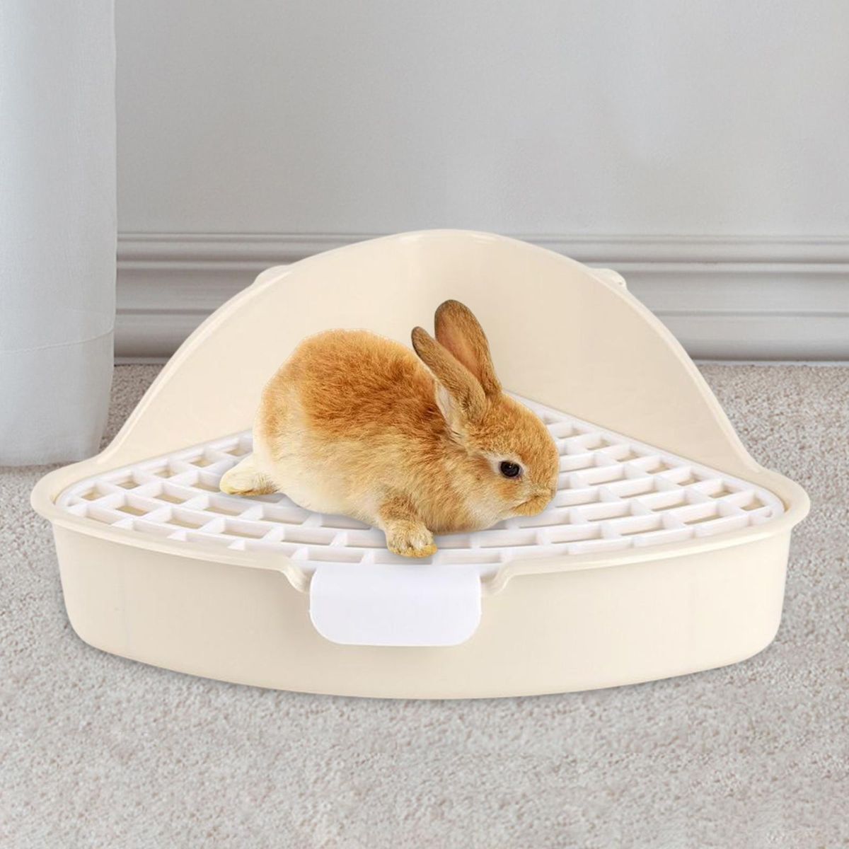 bunny litter tray;Triangle bunny litter box for cage corner Potty;Toilet Pet Pan rabbit litter box with grid;pet litter pan Trainer Rats Small Animal;Hamster Chinchilla Ferret Hedgehog Supplies;indoor Pets Training essentials accessories