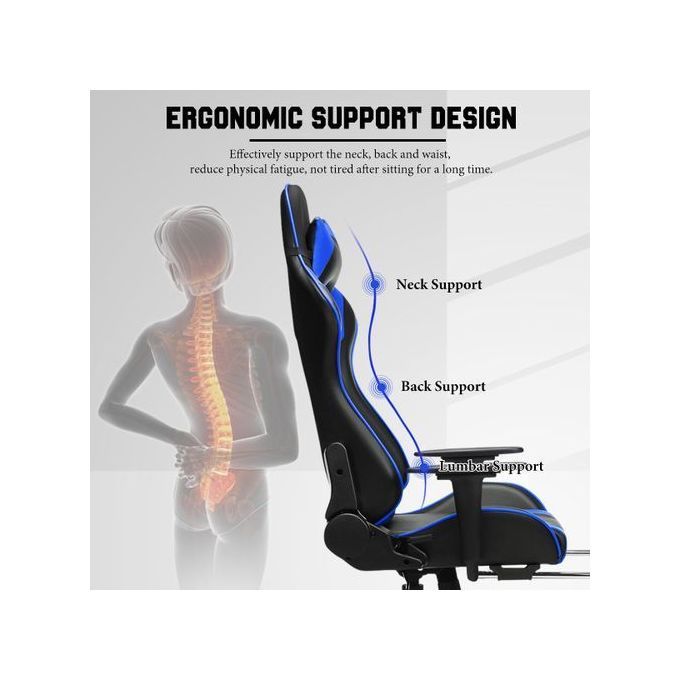 This gaming chair is multifunctional, and this is one of the many reasons why it is so great and comfortable. This Gaming Chair extends the full length of the back with support for the shoulders, head, and neck. Our chairs are crafted to perfection and designed to the bodies natural shape, you will find complete comfort with its furniture quality PU leather.