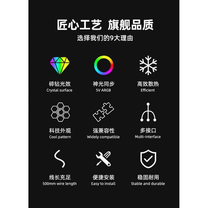 Lighting can realize , monochrome, breathing, flashing, and music beating and other color changing modes.
