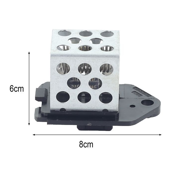 The length of the radiator fan resistor is 8cm, the width is 6cm and the height is 4.6cm.