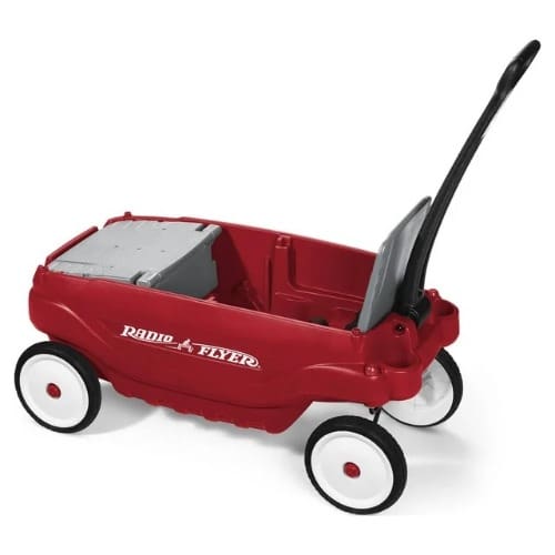 The QuietRide wheels produce very little noise, causing no disturbance to others. After your child is done playing, you can just flip the kids' wagon handle underneath to conveniently store it for transport.