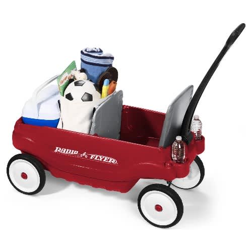 Radio Flyer canopy wagon has a fold-over handle for easy storage