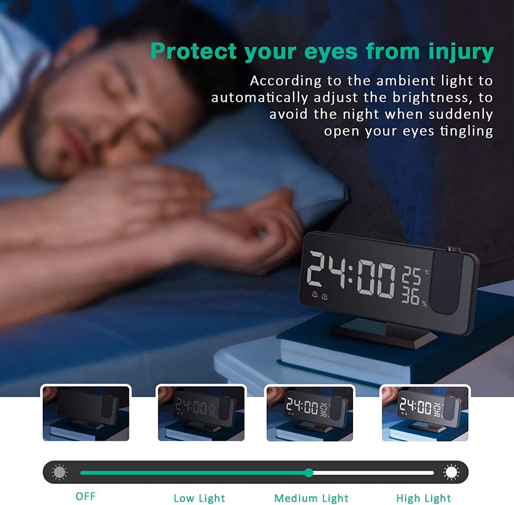 7.5 Inch FM Radio Temperature Display Digital Projection Alarm Clock-Black