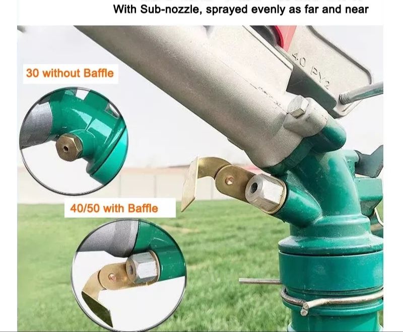 Rain-arm can be positioned progressively on different locations in the farm to irrigate the entire field with required water depth and rotation. To give One acre-inch rain about 2 to 3 pumping hours is sufficient as per the need of the crop. One or Two Rain-arm may be sufficient for entire farm up to 10 Acres area as per the model. Underground mainline can be laid through the center to provide outlets at suitable spacing for connecting portable sprinkler pipes and rain hand to cover both sides area of the mainline.This sprinkler good for farm and garden, it cover to 26meter in radius, it can up to 5bar pressure. Can be used on any plant.Sprinkler irrigation system is a high efficiency water use system and has following merits against surface irrigation method